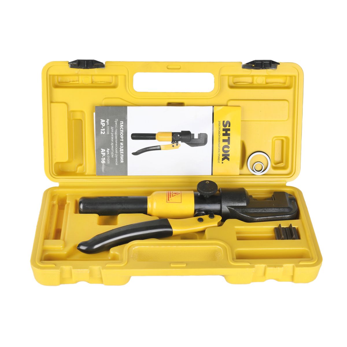 Ручной гидравлический арматурорез SHTOK АР-12 01008 предназначены для резки арматуры и прутков из низколегированной стали диаметром до 12 мм. Небольшие размеры и малый вес обеспечивает удобную работу. Рабочая часть имеет ножи, которые надежно фиксируют заготовку. Используются в цехах или на станциях обслуживания автомобилей.