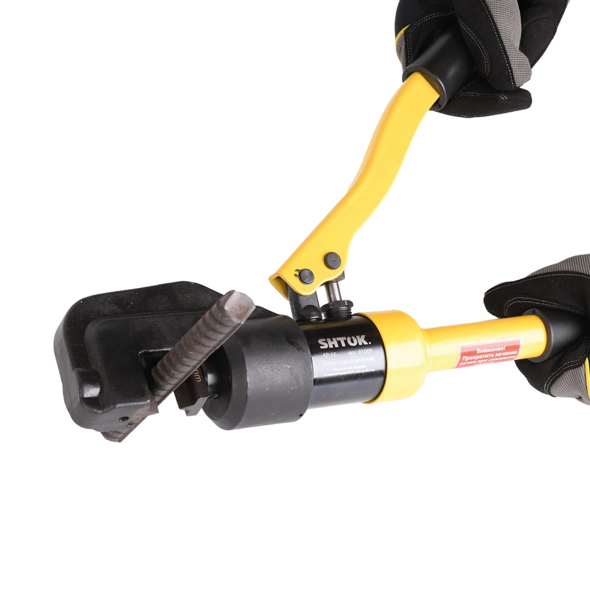 Ручной гидравлический арматурорез SHTOK АР-16 01009 обладают прочной конструкцией и небольшим весом для удобной и длительной работы. Предназначены для резки арматуры и прутков из низколегированной стали диаметром до 16 мм. Рабочая часть имеет ножи, которые надежно фиксируют заготовку. Открытая рабочая зона позволяет легко заводить арматуру внутрь и контролировать визуально процесс резки.