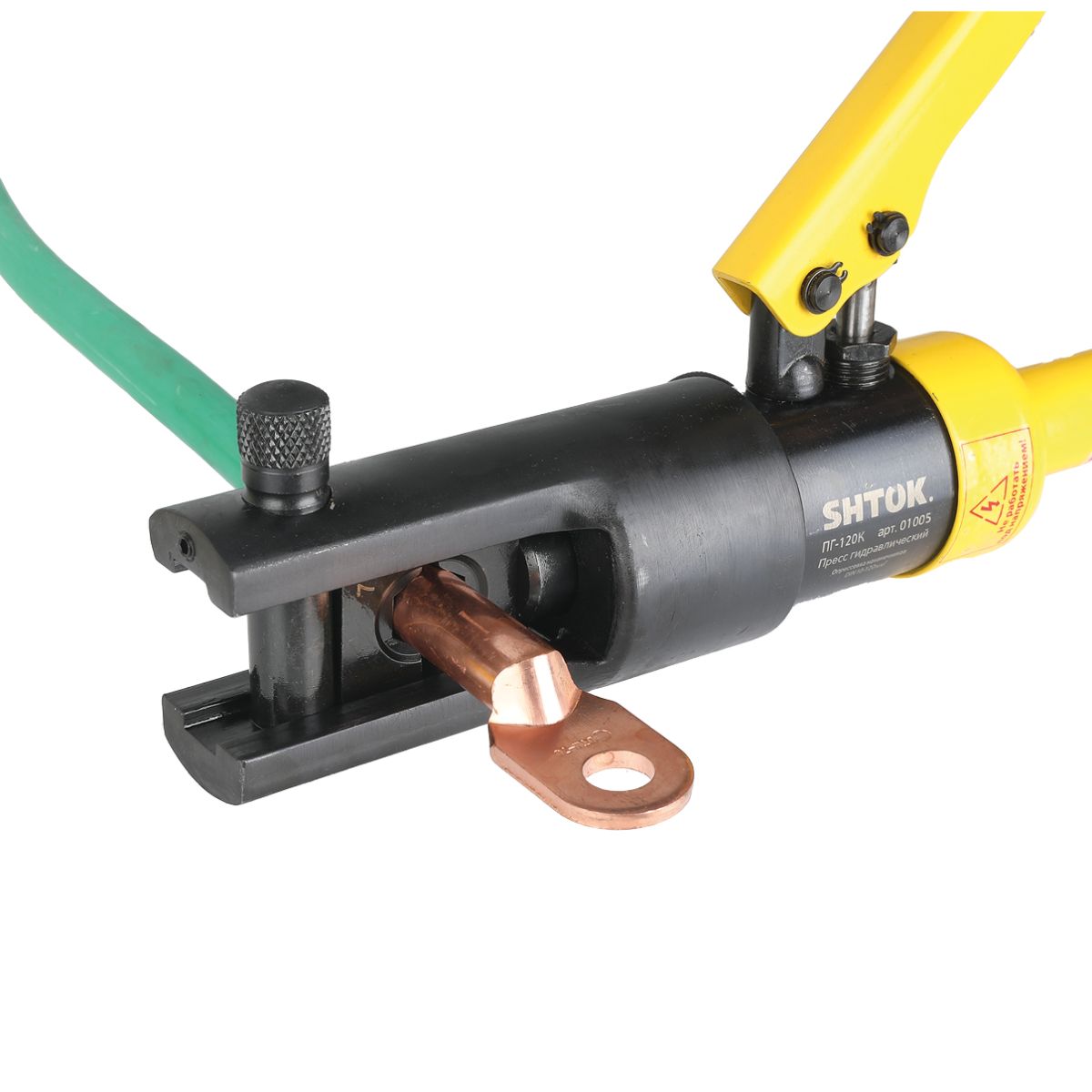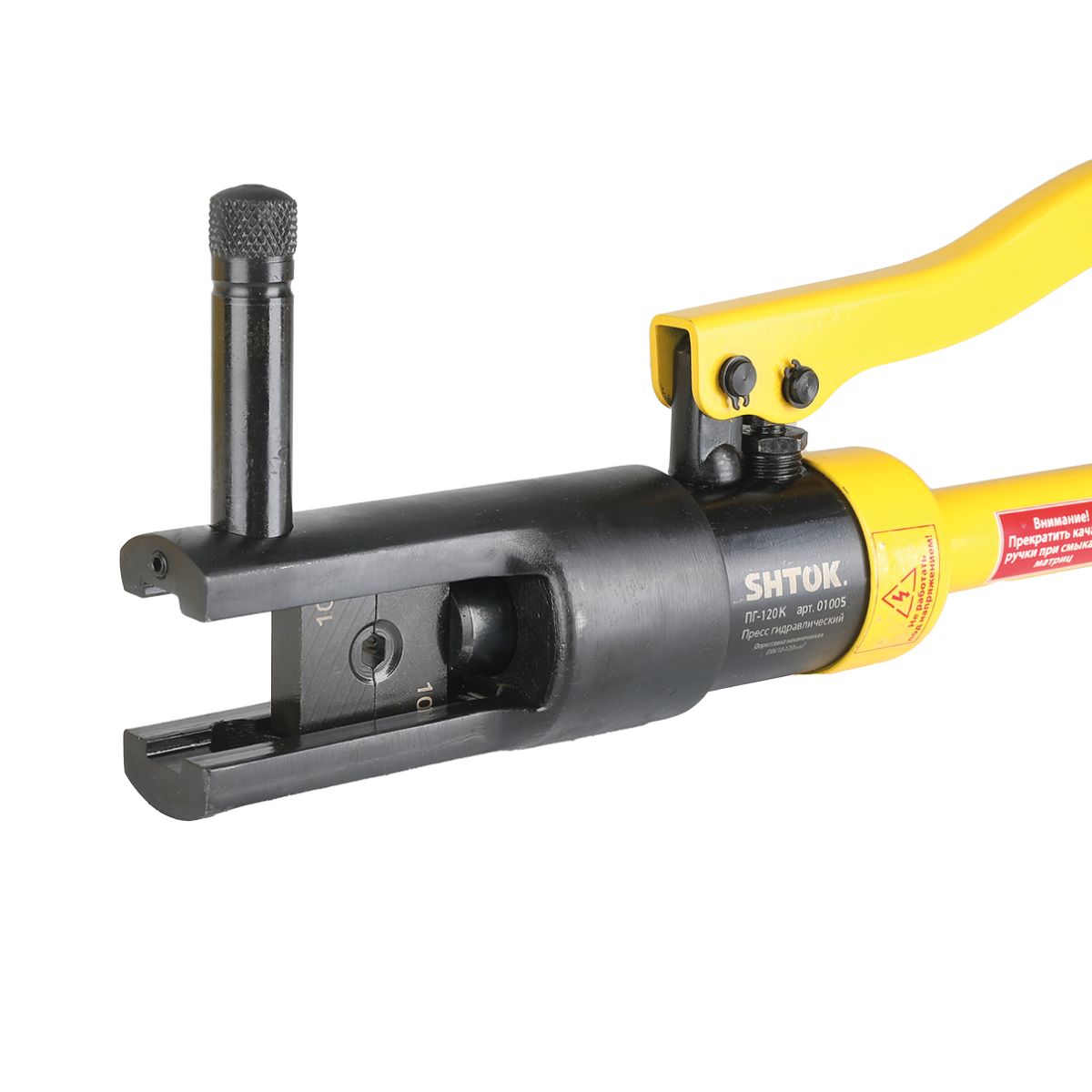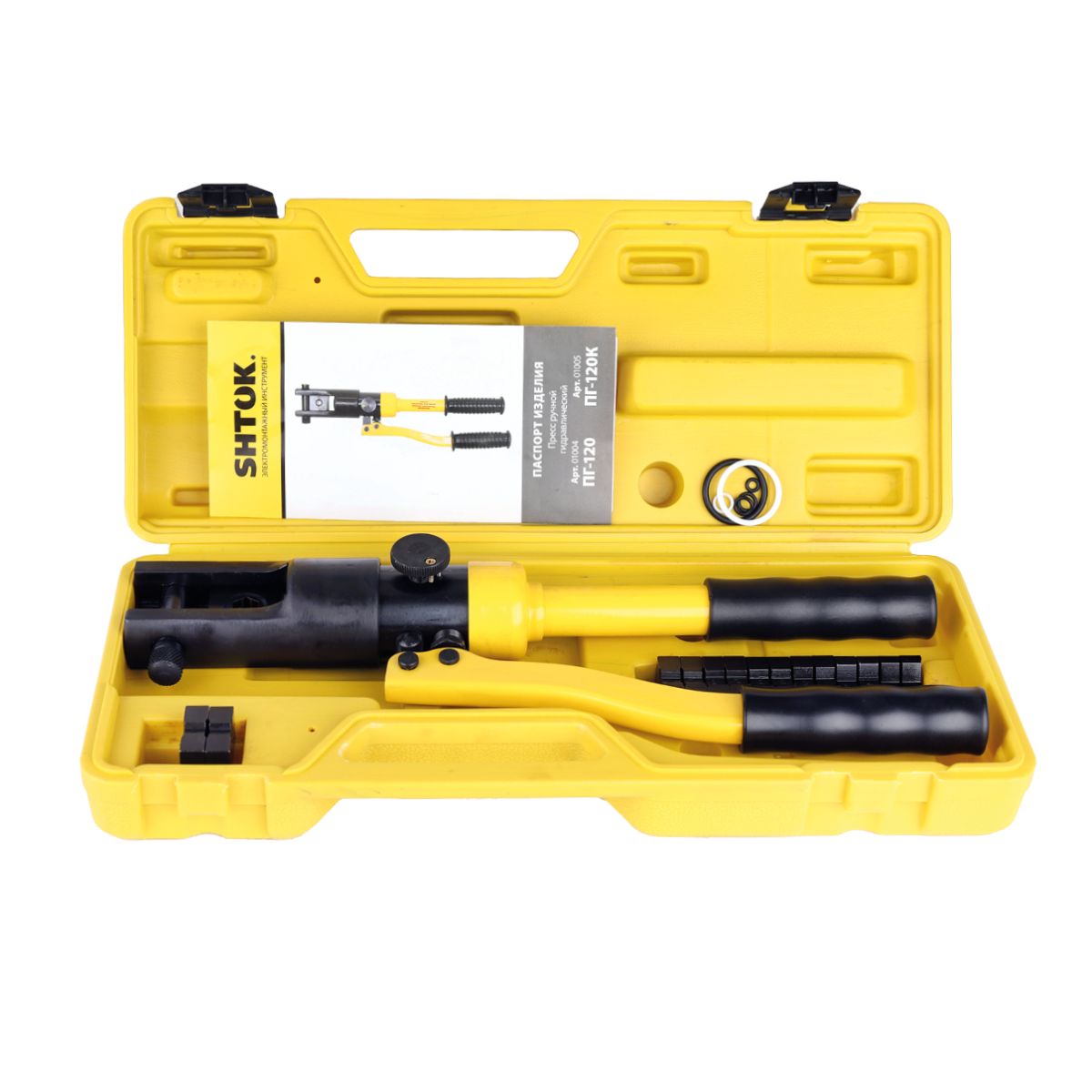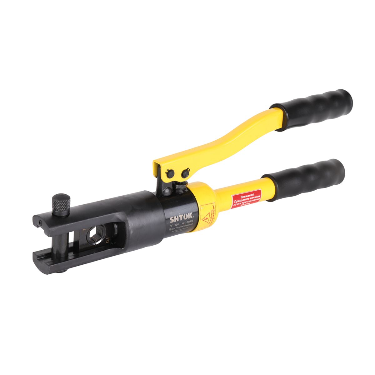 Ручной гидравлический пресс SHTOK ПГ-120К 01005 Пресс гидравлический ПГ-120К предназначен для опрессовки медных и алюминиевых наконечников сечением от 10 до 120 мм2.