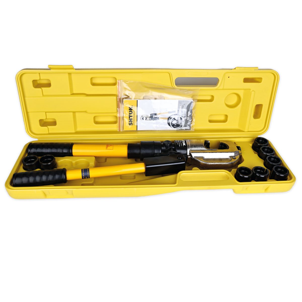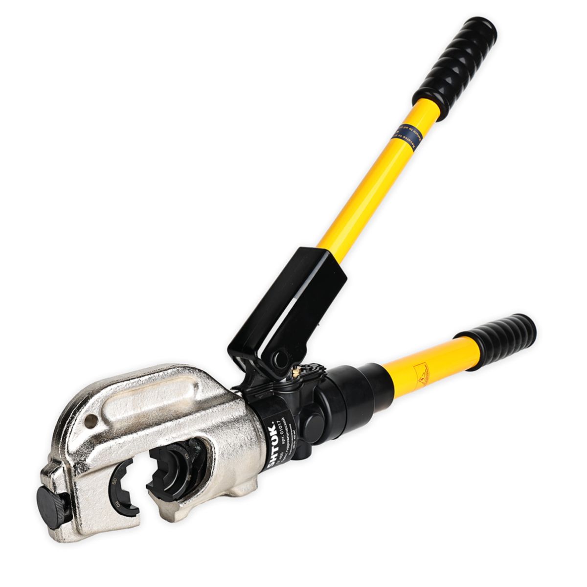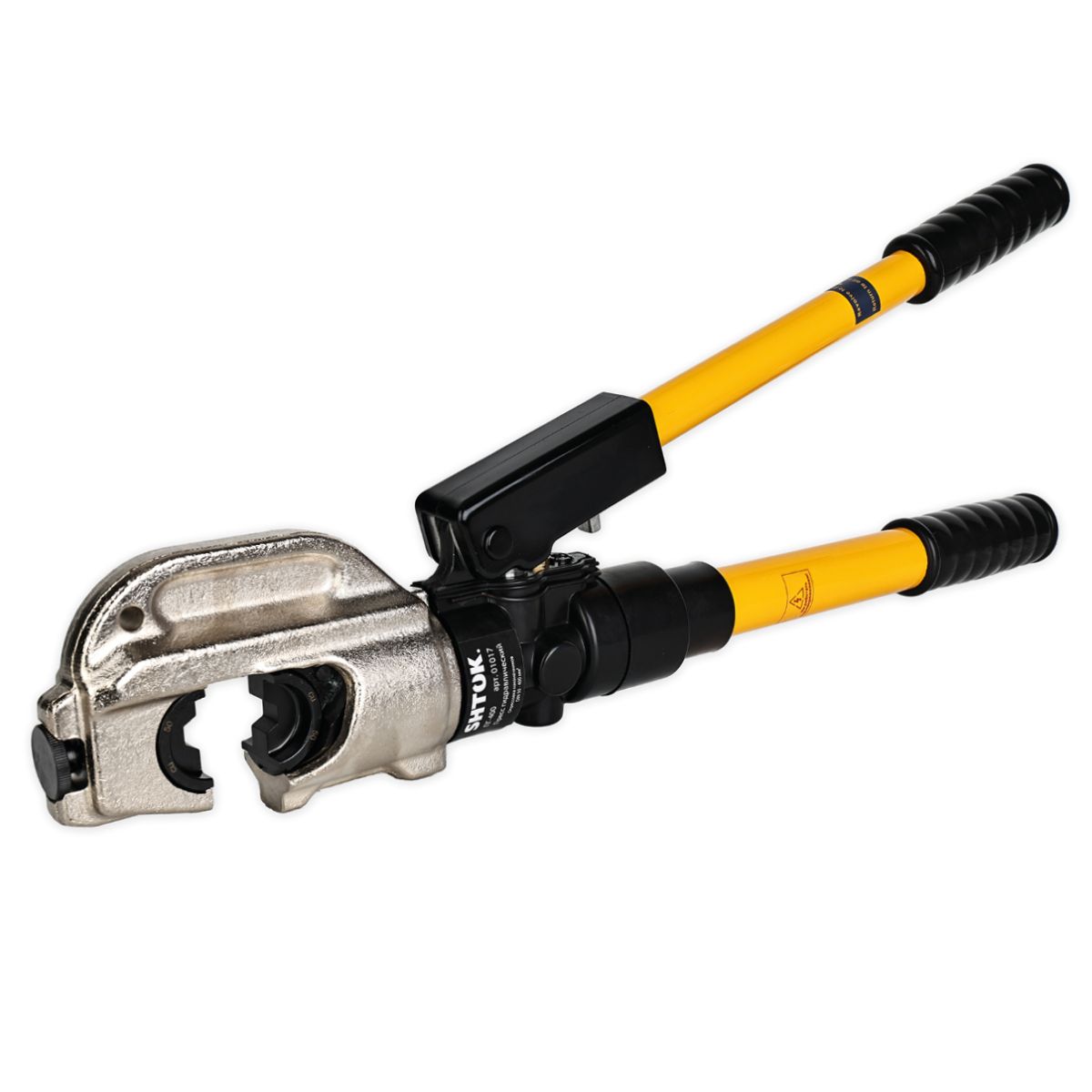 Автономный гидравлический пресс SHTOK ПГ-400 01017 предназначен для оконцевания и соединения алюминиевых и медных жил проводов и кабелей сечением 50-400 мм способом опрессовки с использованием кабельных наконечников и гильз стандарта DIN. Профиль сечения в месте опрессовки - шестигранник. Модель имеет двухплунжерную