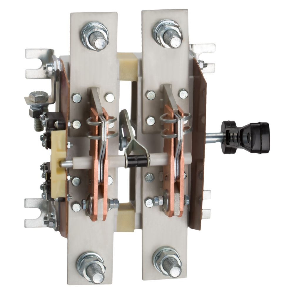 Разъединитель 2 полюсный на номинальный ток 3150 А, где установлена несъемная рукоятка, а механическая износостойкость составляет 4000 циклов.