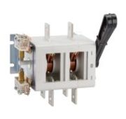 Выключатель-разъединитель 3 полюсный на номинальный ток 100 А, в котором установлена несъемная рукоятка.