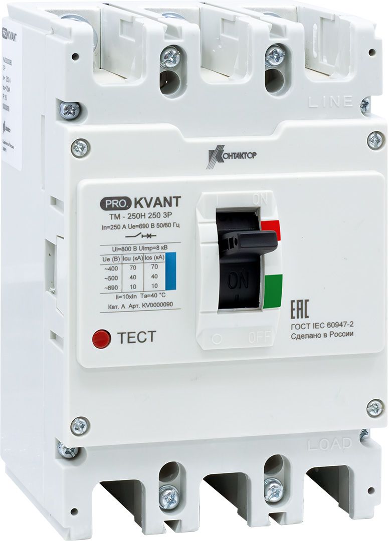 Читать все статьиАвтоматический выключатель PRO.KVANT TM-250S 3P 200A 50kA