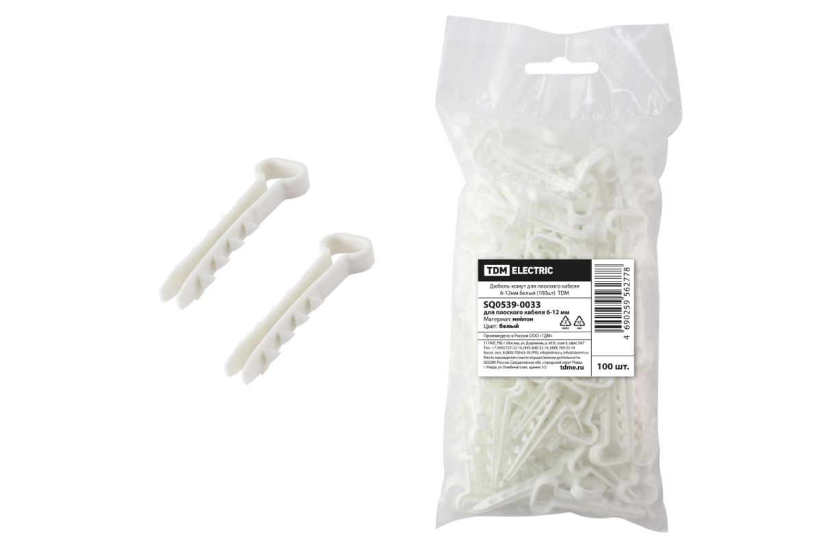 Читать все статьиДюбель-хомут для плоского кабеля 6-12мм белый (100шт) TDM