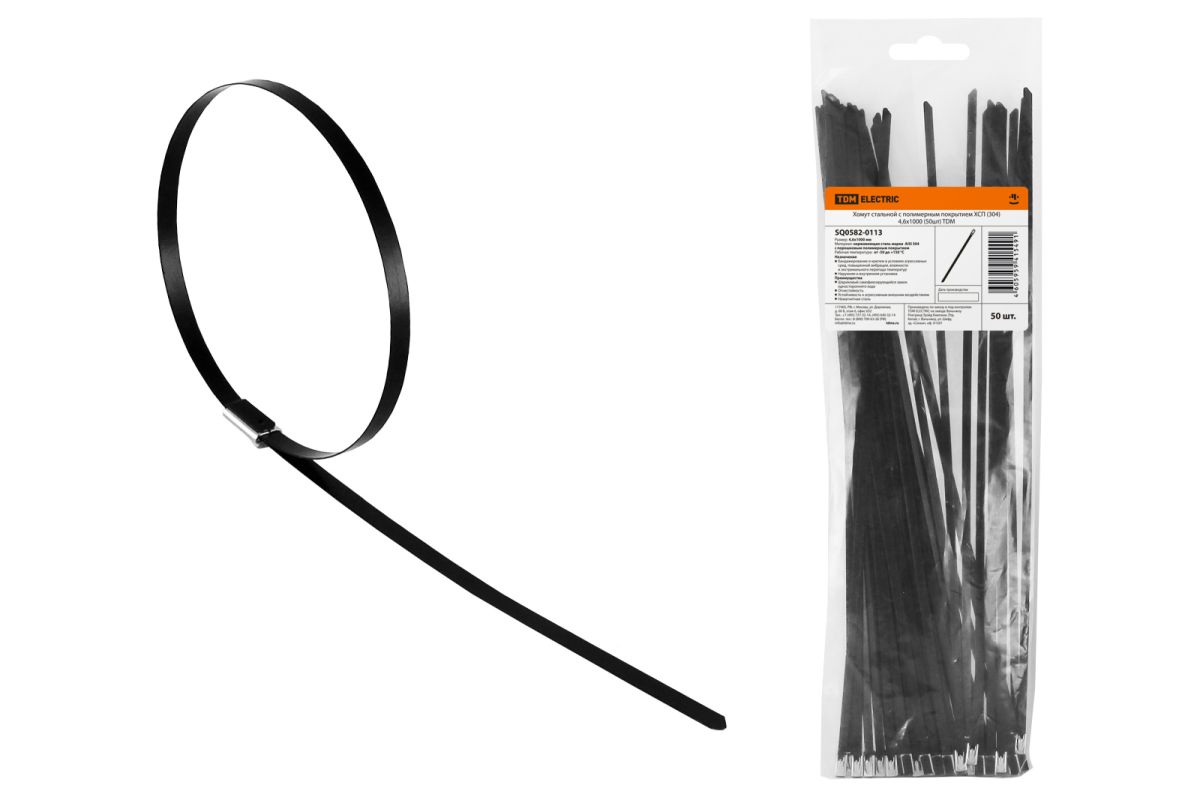 Хомут стальной с полимерным покрытием ХСП (304) 4,6х1000 (50шт) TDM