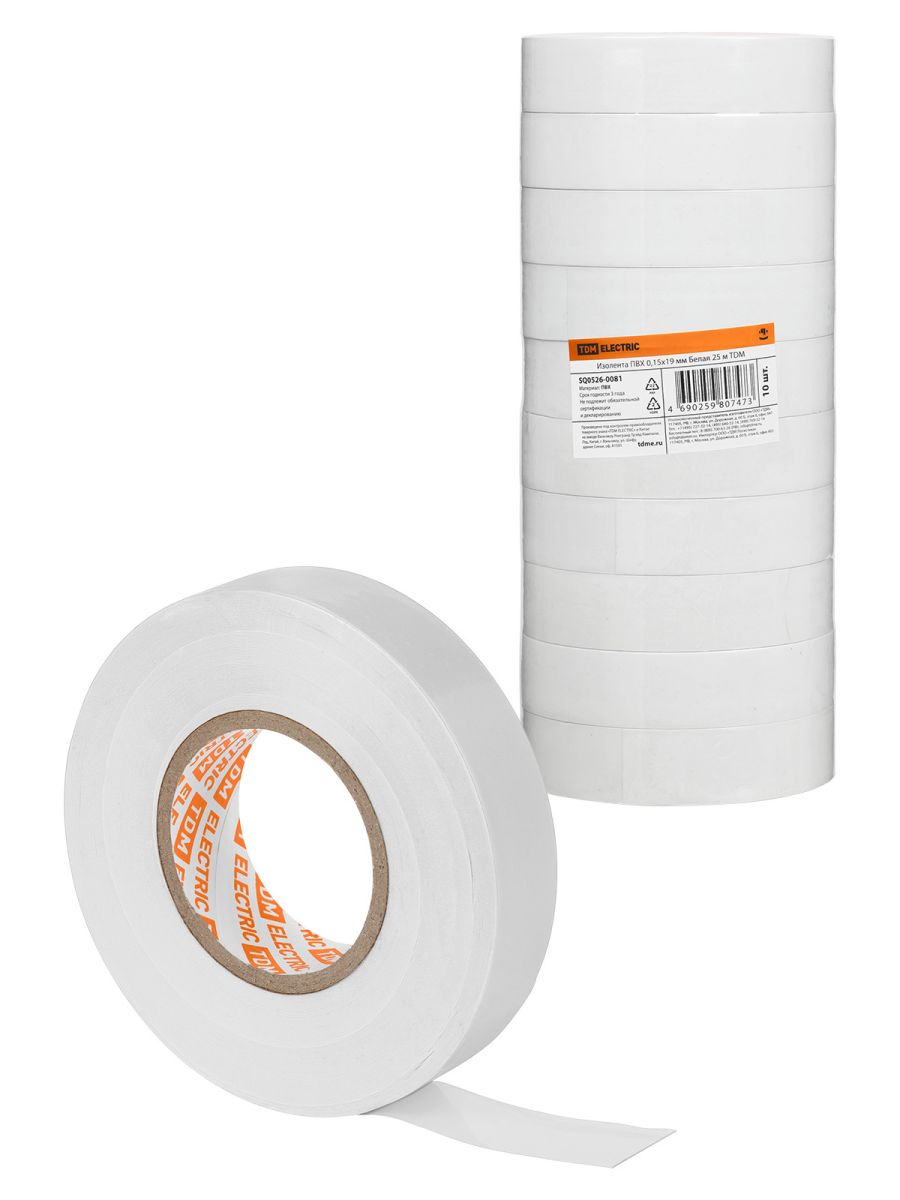 Читать все статьиИзолента ПВХ 0,15х19 мм Белая 25 м TDM
