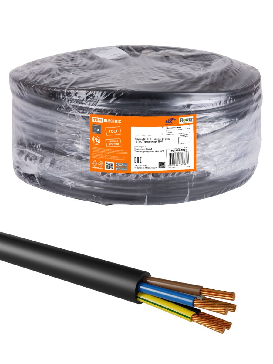 Кабель КГТП-ХЛ 5х4(N,PE)-0,66 - 3 ГОСТ (разномер) TDM