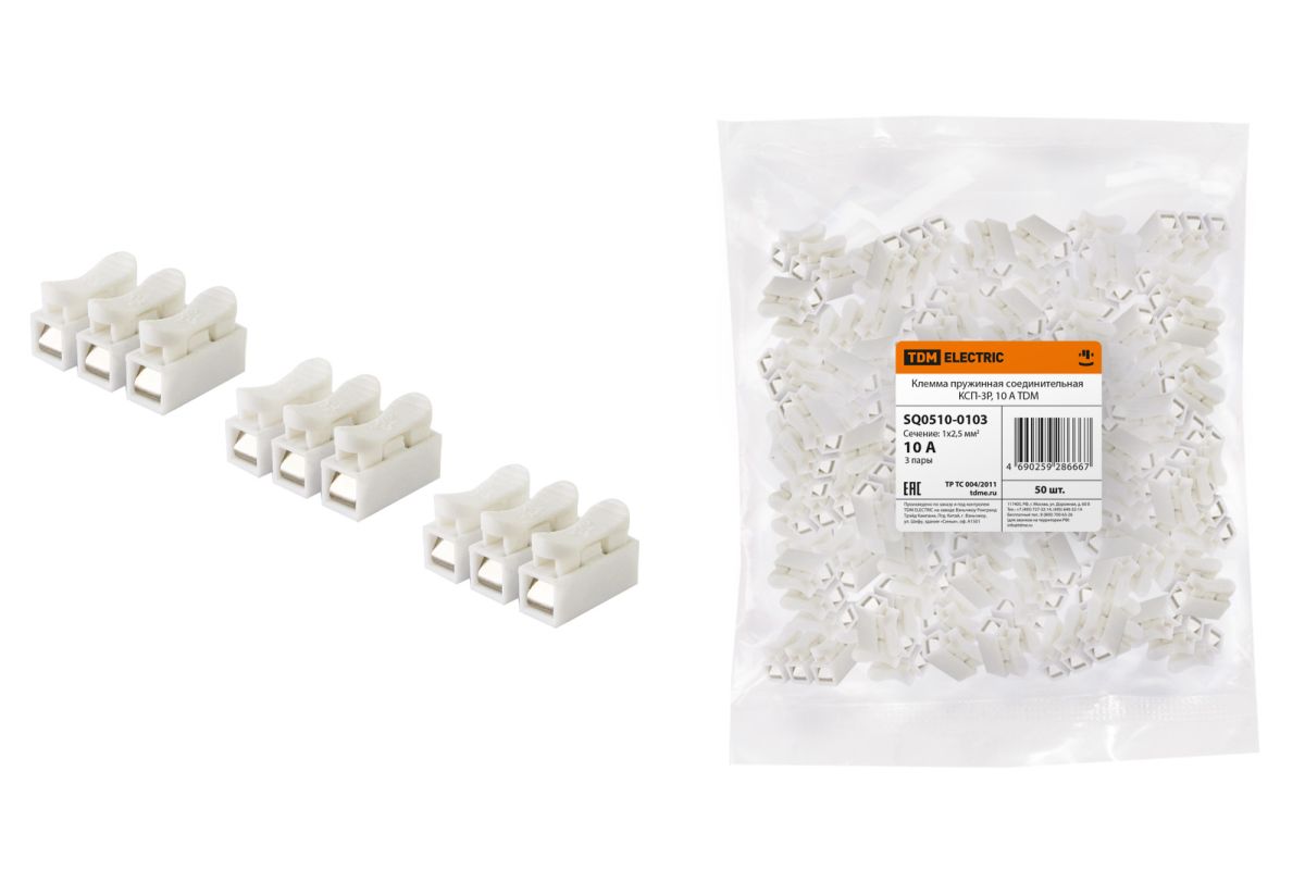 Читать все статьиКлемма пружинная соединительная КСП-3P, 10 A TDM
