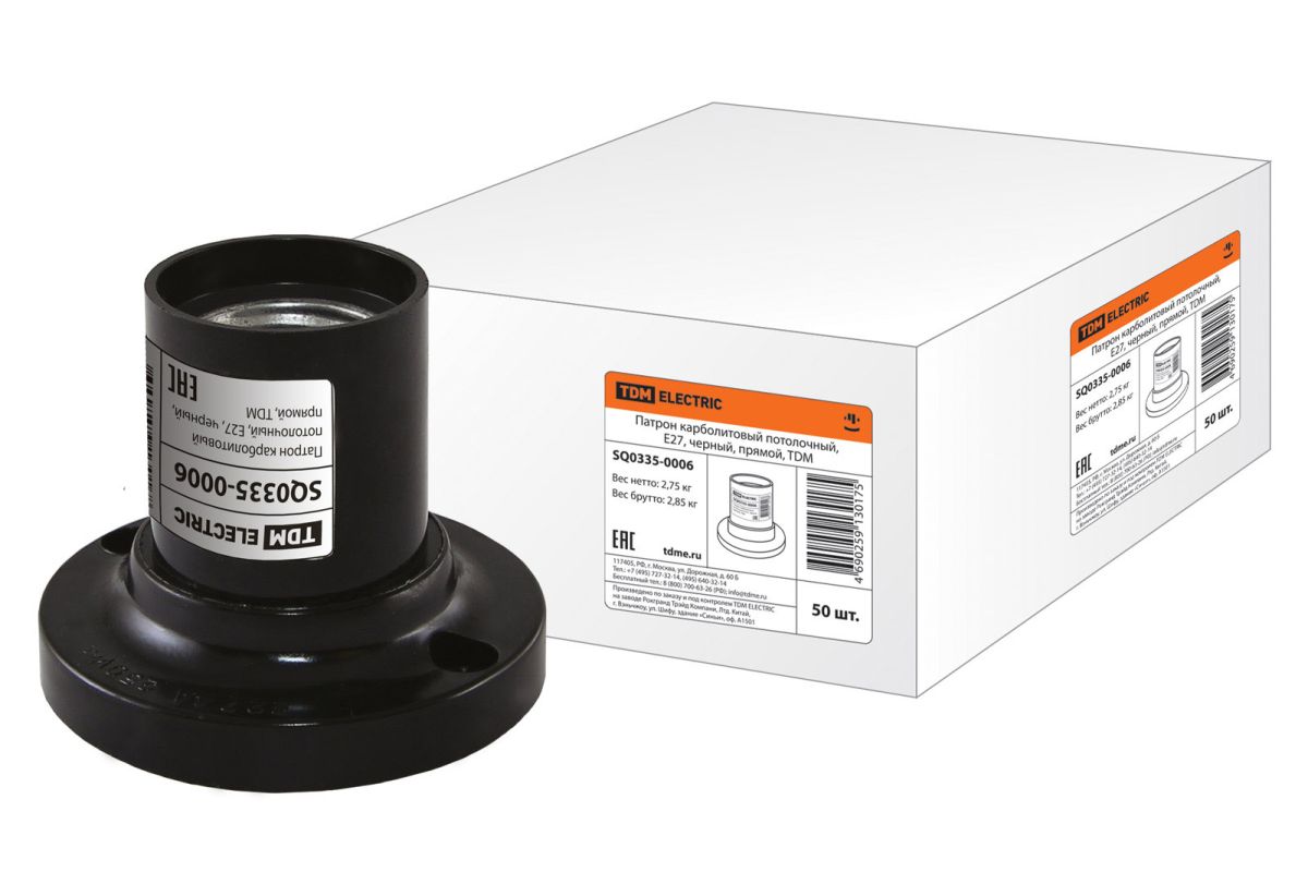 Читать все статьиПатрон карболитовый потолочный, Е27, черный, прямой, TDM