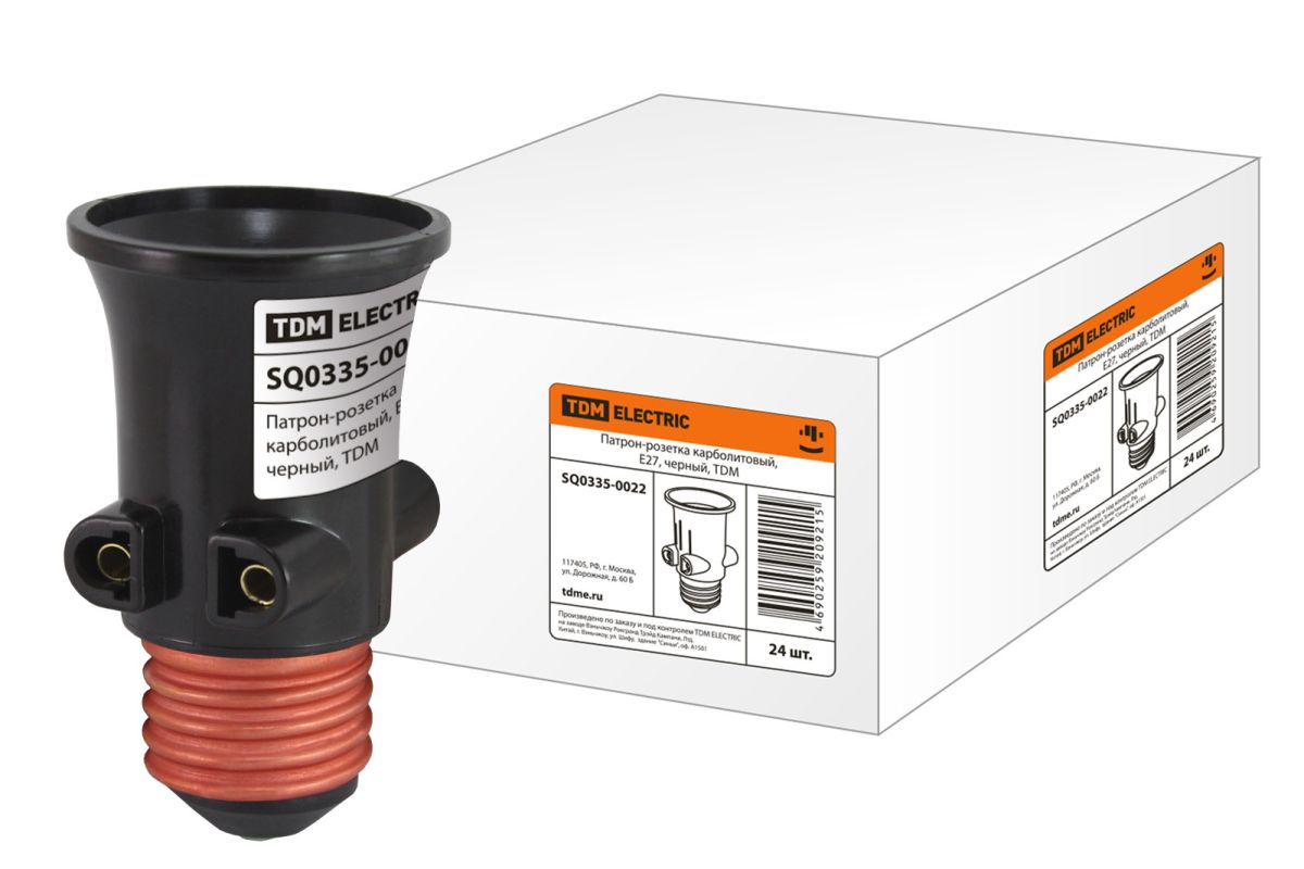 Читать все статьиПатрон-розетка карболитовый, Е27, черный, TDM