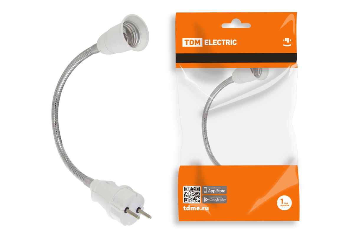 Переходник вилка-Е27 гибкий 300мм, белый, TDM