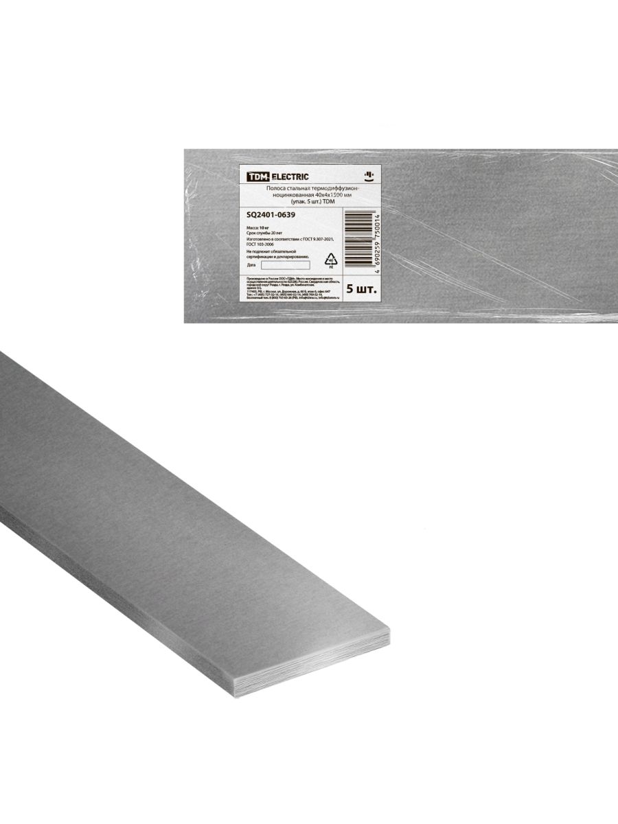 Полоса стальная термодиффузионноцинкованная 40х4х1500 мм (упак. 5 шт.) TDM