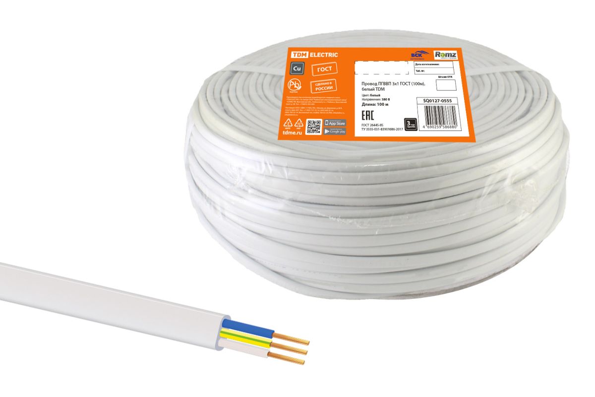Провод ПГВВП 3х1 ГОСТ (100м), белый TDM
