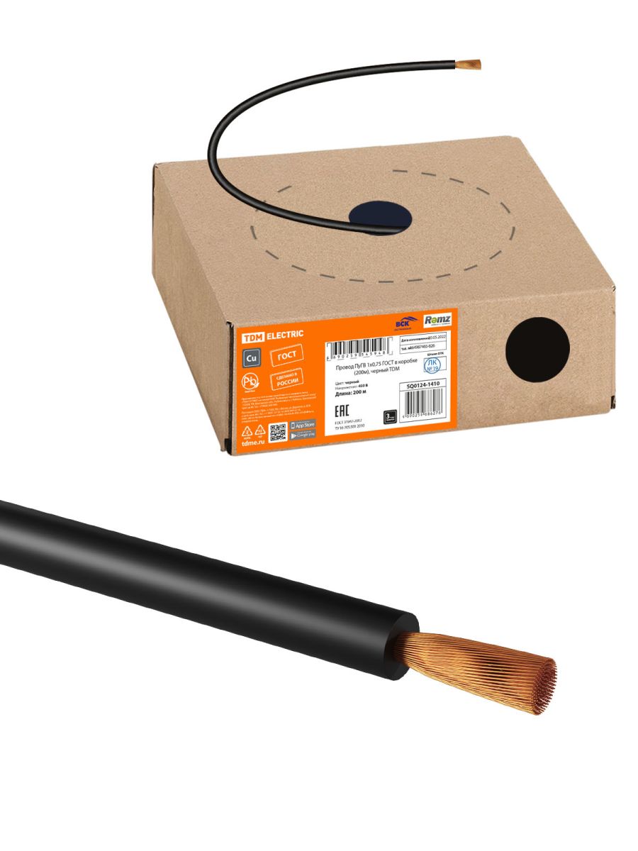 Провод ПуГВ 1х0,75 ГОСТ в коробке (200м), черный TDM