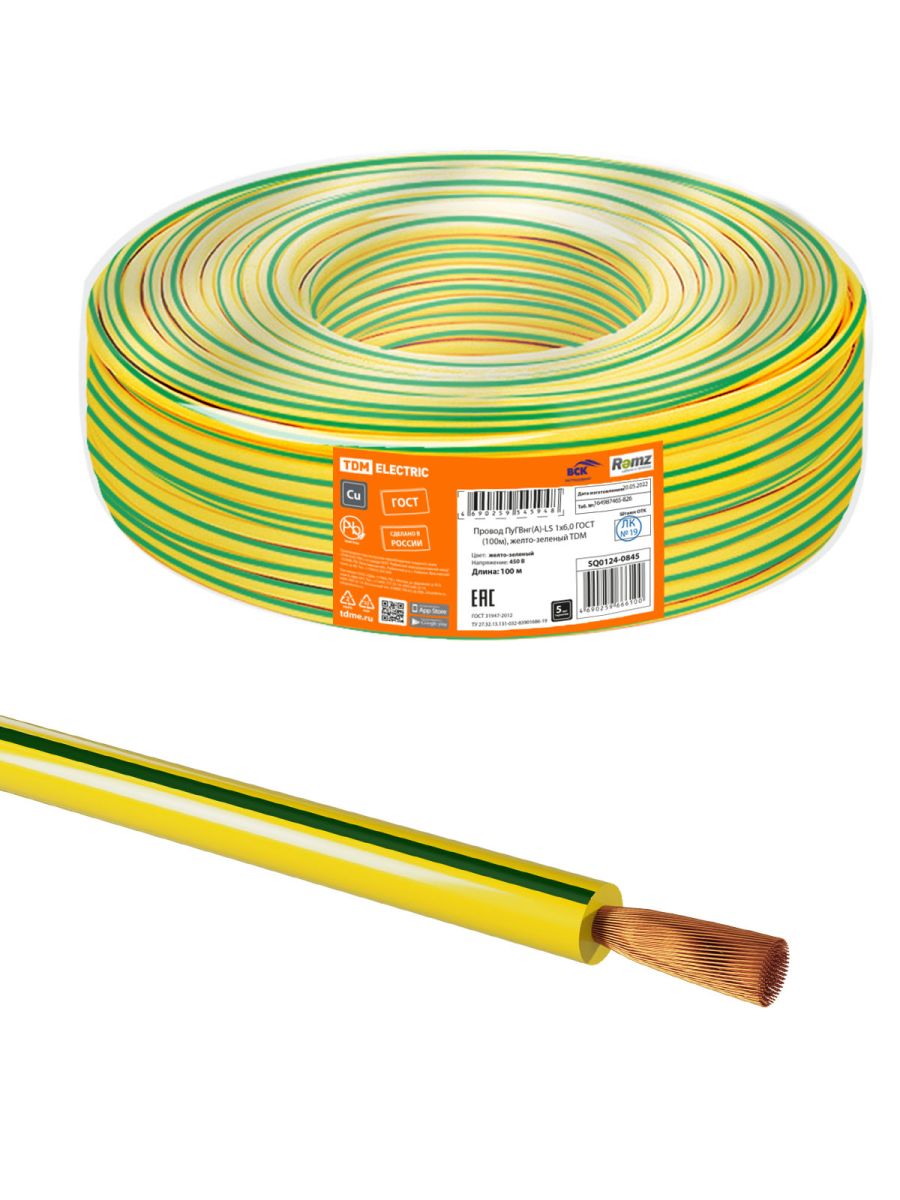 Читать все статьиПровод ПуГВнг(А)-LS 1х6,0 ГОСТ (100м), желто-зеленый TDM