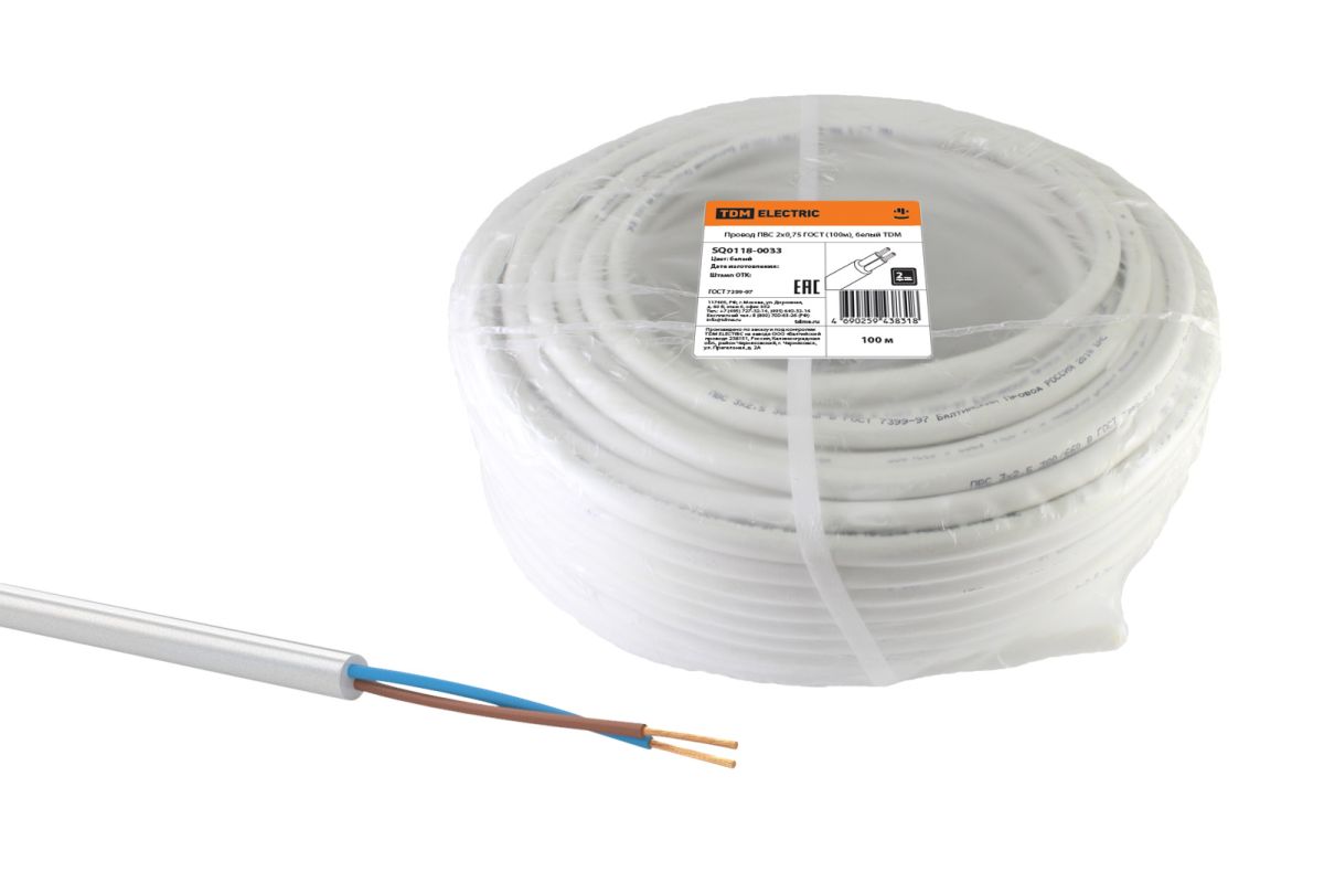 Читать все статьиПровод ПВС 2х0,75 ГОСТ (100м), белый TDM