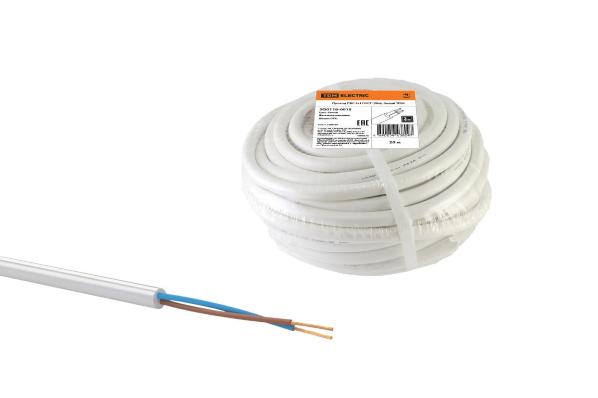 Читать все статьиПровод ПВС 2х1 ГОСТ (20м), белый TDM