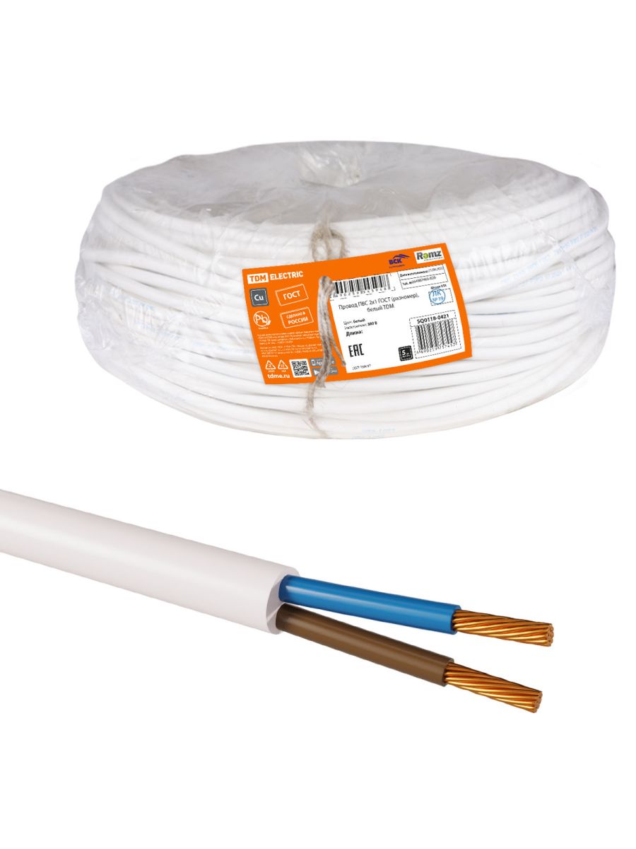 Провод ПВС 2х1 ГОСТ (разномер), белый TDM