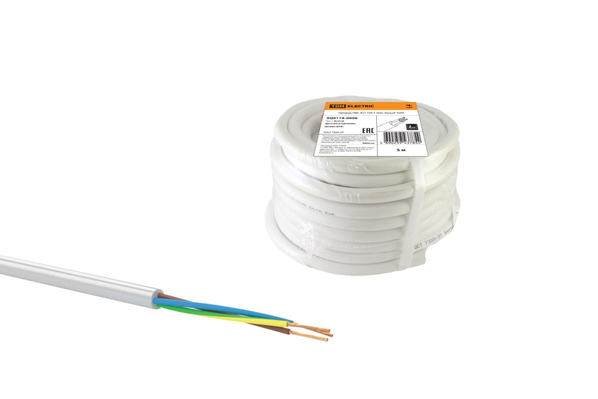 Провод ПВС 3х1 ГОСТ (5м), белый TDM