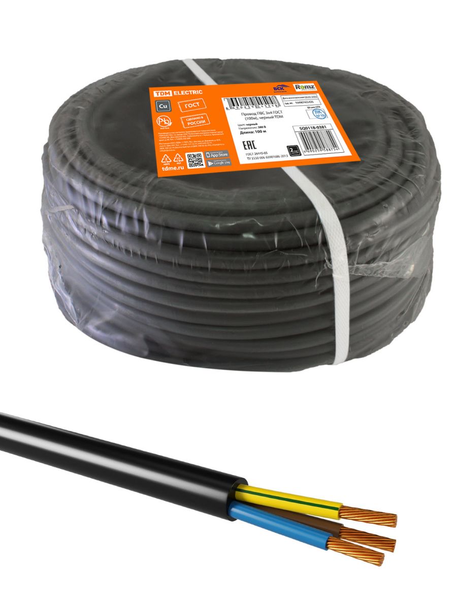 Читать все статьиПровод ПВС 3х4 ГОСТ (100м), черный TDM