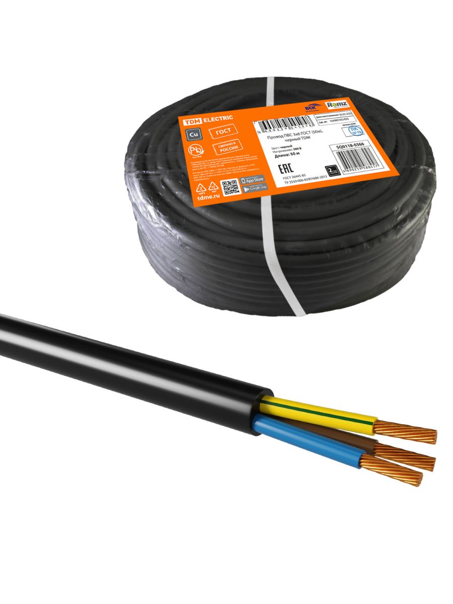 Читать все статьиПровод ПВС 3х6 ГОСТ (50м), черный TDM