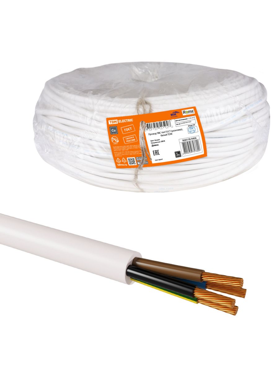 Провод ПВС 4х4 ГОСТ (разномер), белый TDM