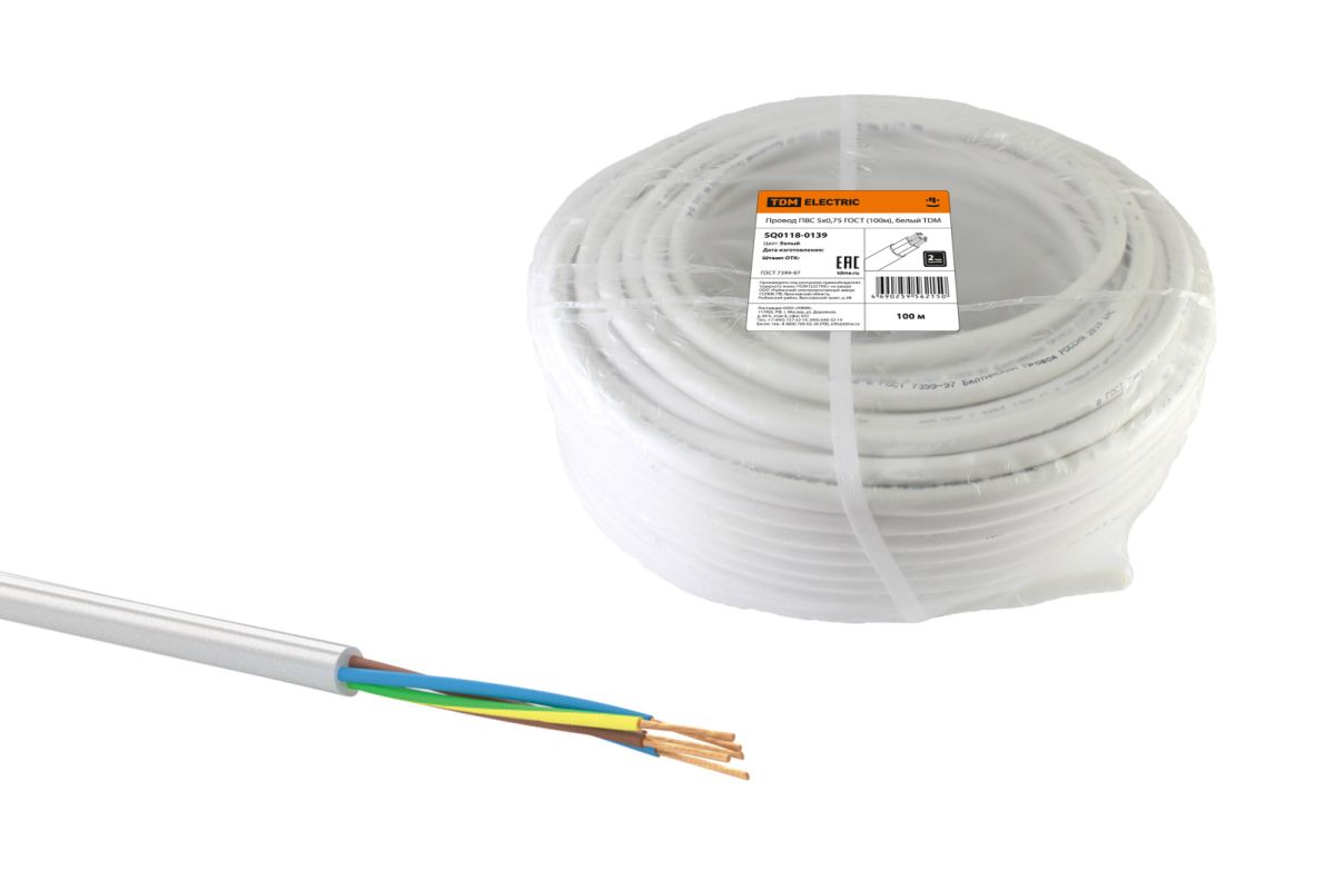 Читать все статьиПровод ПВС 5х0,75 ГОСТ (100м), белый TDM
