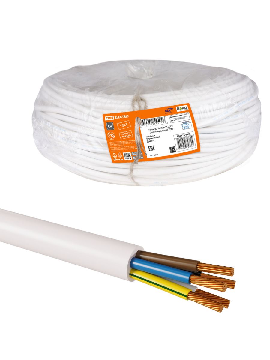 Провод ПВС 5х0,75 ГОСТ (разномер), белый TDM