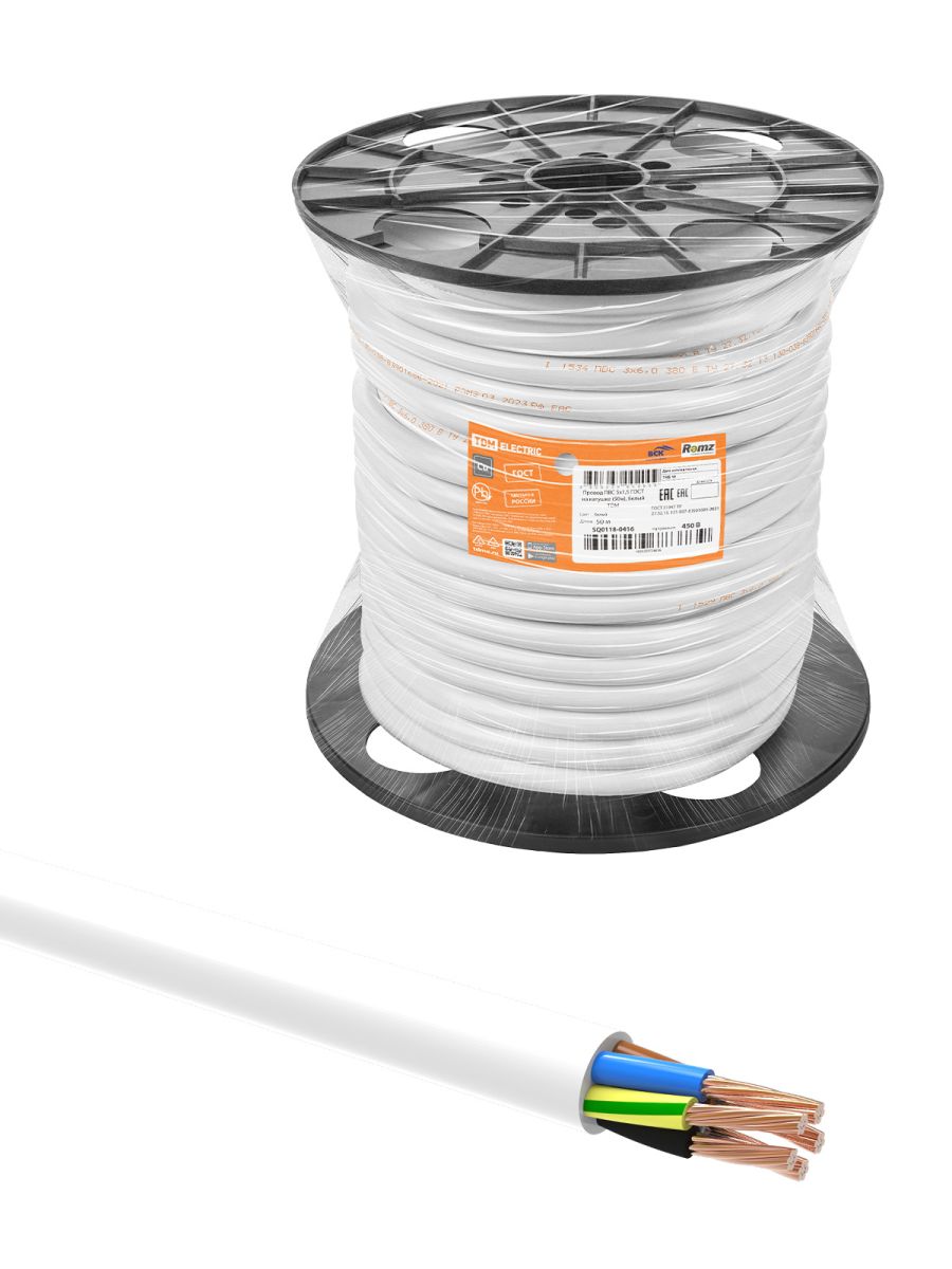 Провод ПВС 5х1,5 ГОСТ на катушке (50м), белый TDM