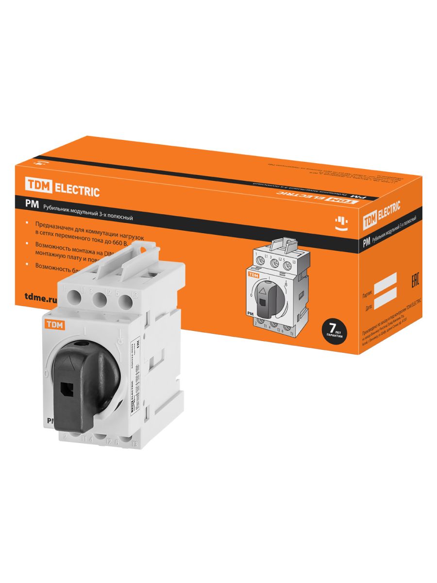 Читать все статьиРубильник модульный РМ-25 3П 25A TDM