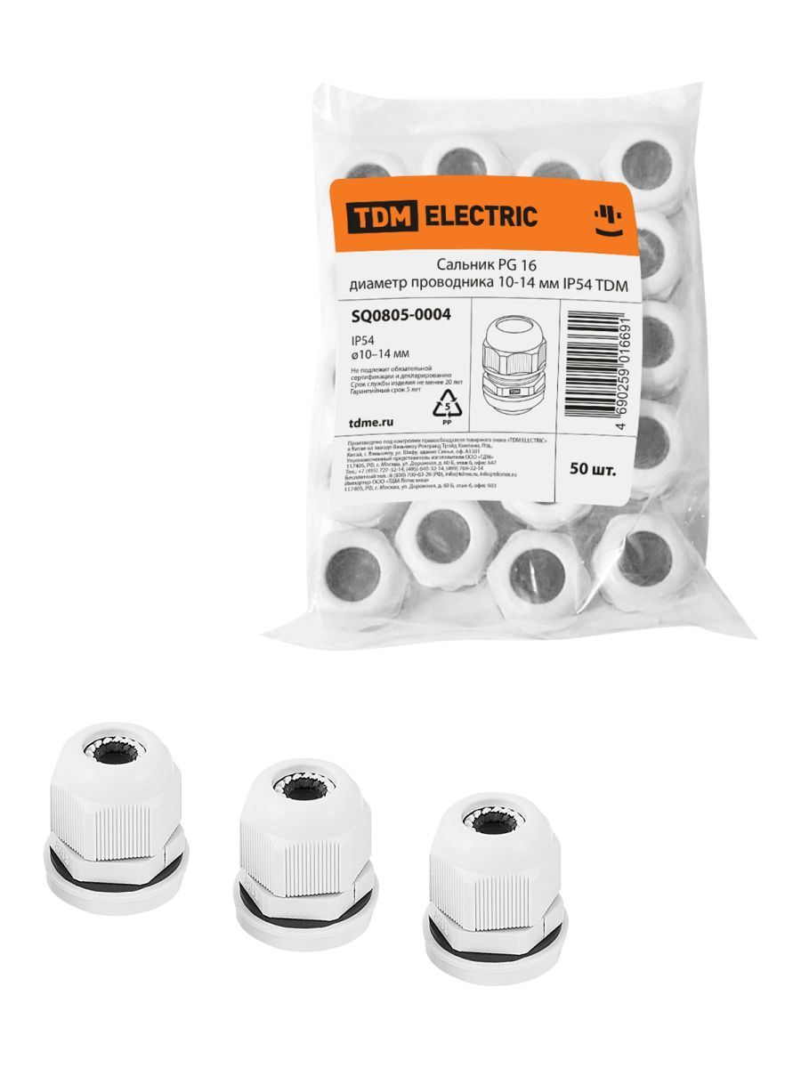 Читать все статьиСальник PG 16 диаметр проводника 10-14 мм IP54 TDM