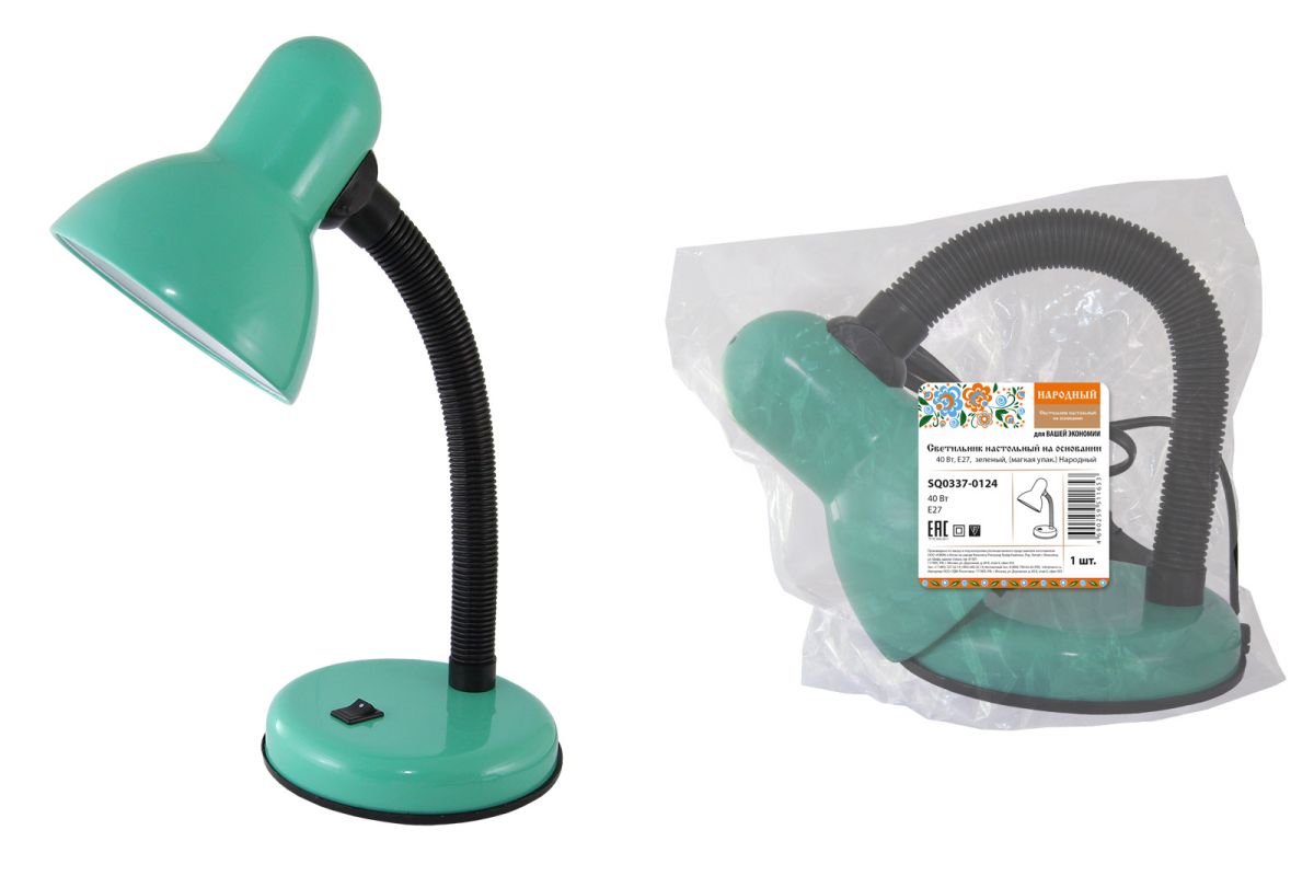 Светильник настольный на основании 40Вт, E27, зеленый, (мягкая упак.) Народный