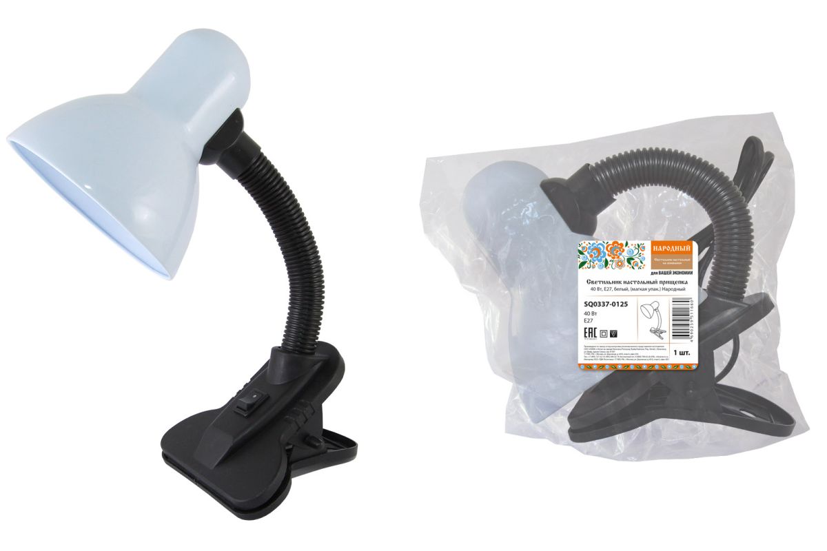 Светильник настольный прищепка 40Вт, E27, белый, (мягкая упак.) Народный