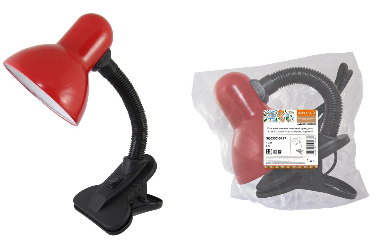 Светильник настольный прищепка 40Вт, E27, красный, (мягкая упак.) Народный