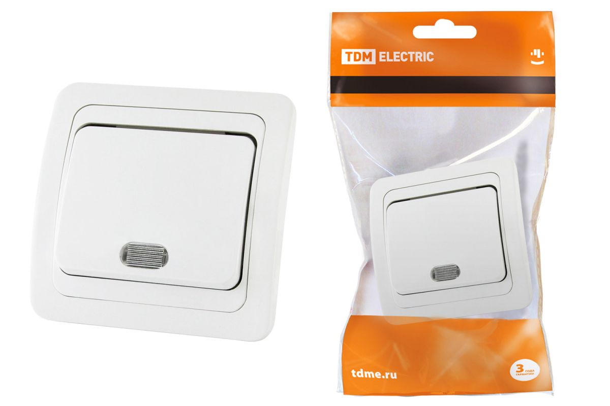 Читать все статьиВыключатель 1-кл. с подсветкой 10А белый «Валдай» TDM