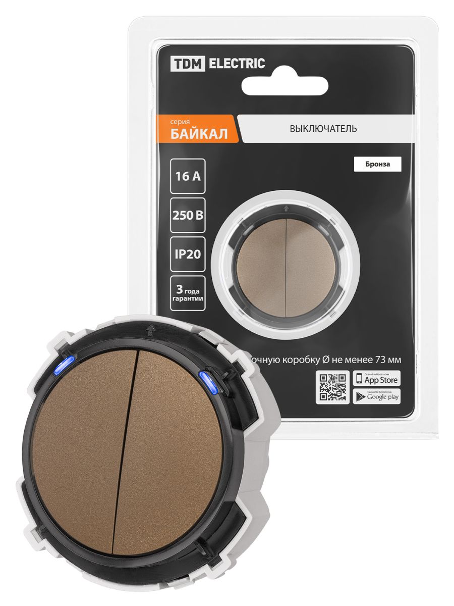 Выключатель 2-кл. 16А 250В кнопочный механизм бронза, «Байкал» TDM
